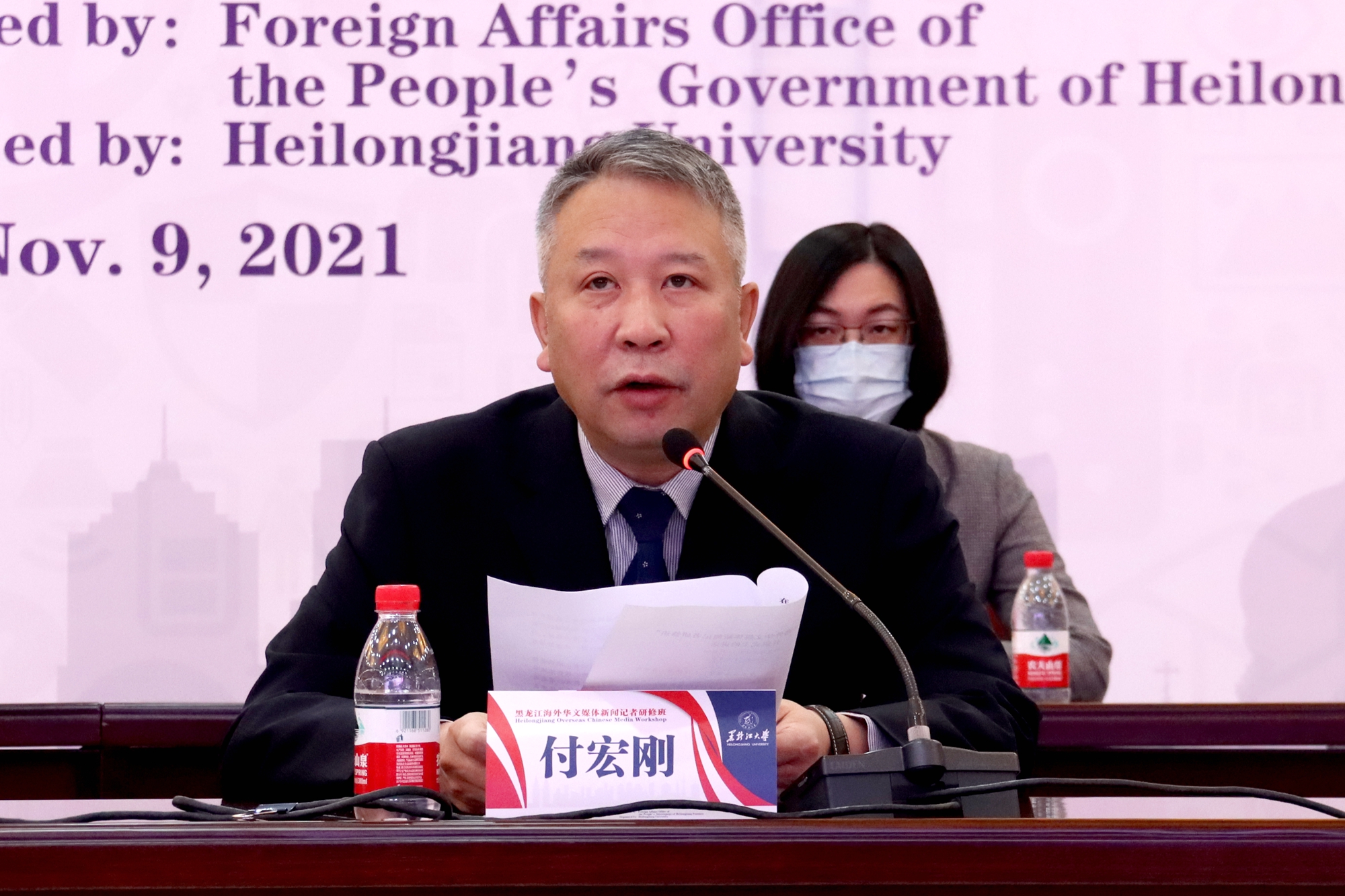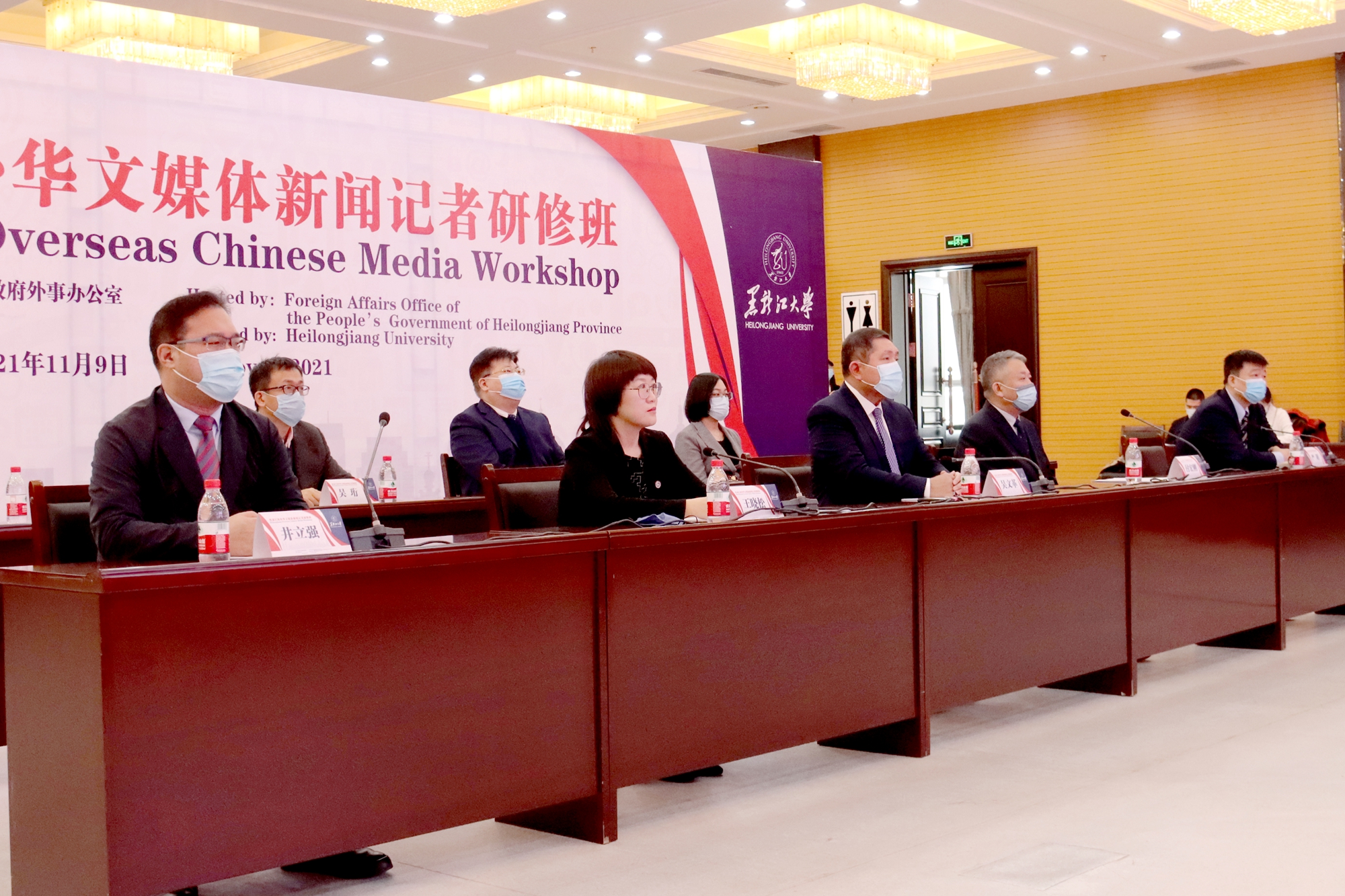 11月9日上午,黑龙江海外华文媒体新闻记者研修班开班式在我校主楼一楼报告厅举行。中华人民共和国驻槟城总领事鲁世巍,黑龙江省人民政府外事办公室主任吴文革,我校校长付宏刚,副校长严明、井立强,马来西亚光华日报总编辑林松荣以及24名本次研修班学员出席开班式。本次开班式由省外办副主任王晓松主持。