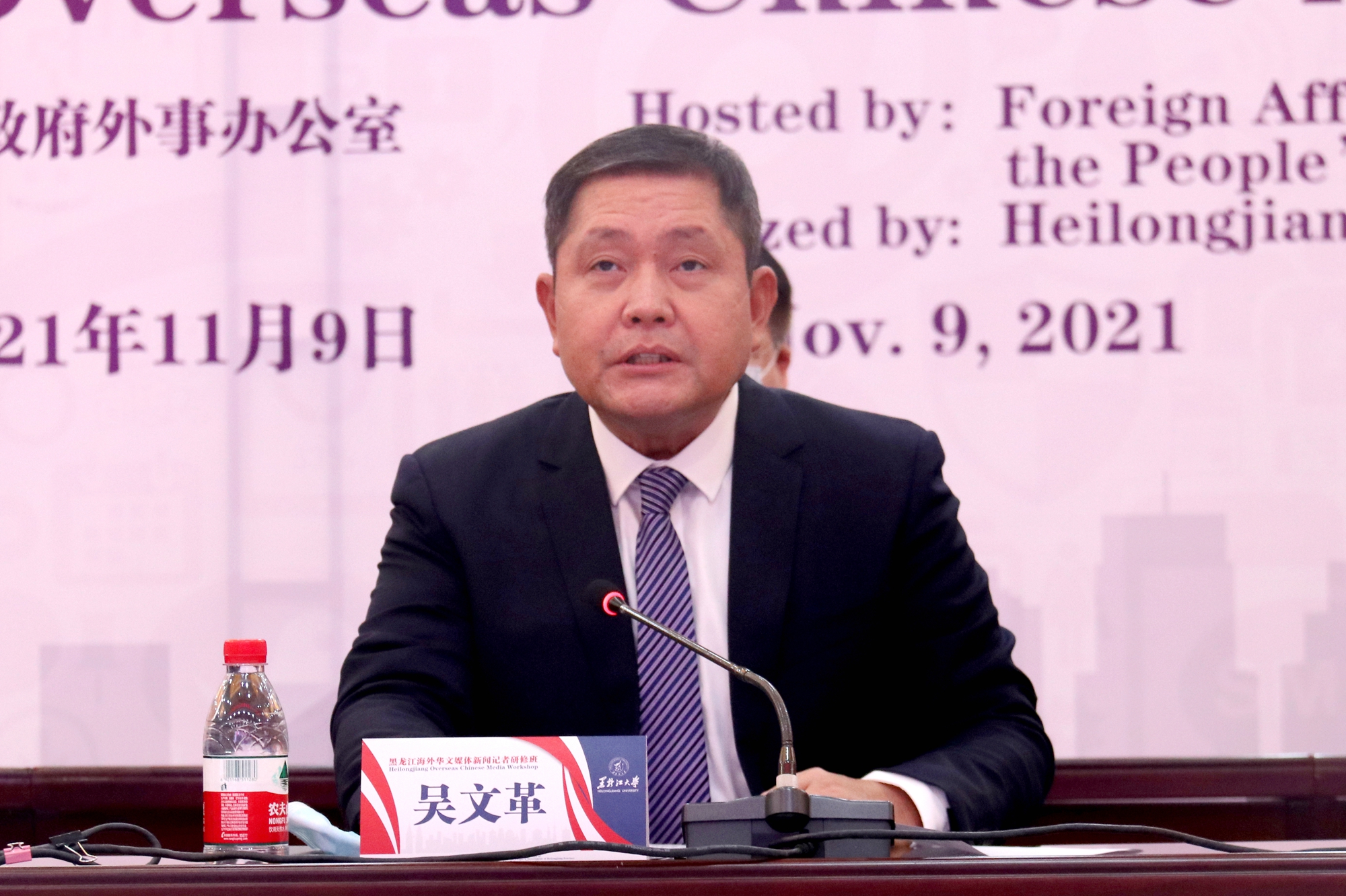 吴文革主任在开班式上首先致辞。他代表黑龙江省人民政府外事办公室对海外华文媒体新闻记者研修班的各位学员表示热烈欢迎。他提到,马来西亚是“一带一路”沿线重点国家,与我国关系良好,槟城州与黑龙江省人民之间更是有着深厚情谊。吴文革主任表示,此次研修班是中马媒体学界与业界交流合作的一次全新尝试,也是新闻传播领域理论和实践创新的一次有益探索,必将有益于加强我省与马来西亚媒体互联互通,促进双方媒体交流,加深中马人民相互了解和友谊。随后,他介绍了本届研修班的媒体精英和优秀记者成员们,并预祝本届研修班取得圆满成功。