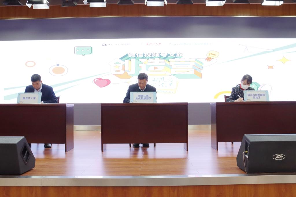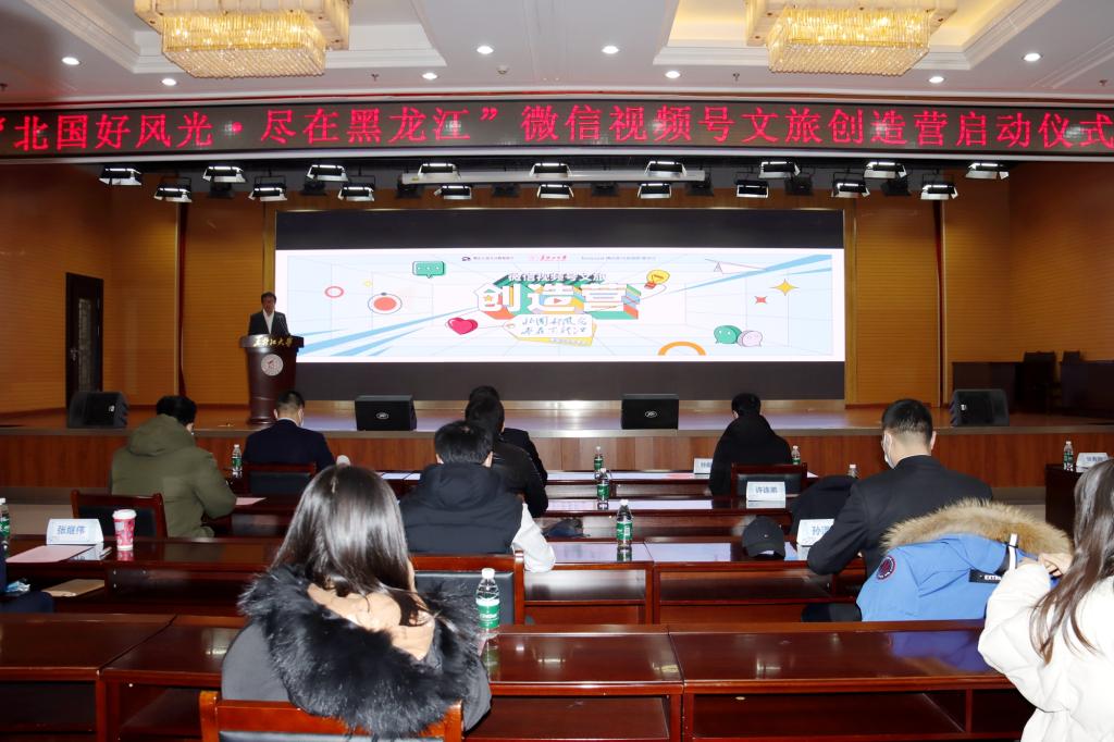 12月24日上午,“北国好风光,尽在黑龙江”微信视频号文旅创造营启动仪式在我校主楼一楼报告厅举行。省文化和旅游厅副厅长何大为、推广营销处一级调研员张春艳、二级调研员许连弟、副处长栗元浩,哈尔滨市文化广电和旅游局推广营销处处长姜兆生,腾讯区域发展部黑吉区域负责人孙殿喜、黑龙江总经理李华虹、黑龙江总编辑芦伟坤、黑龙江文旅事业部总监王晓丁,我校副校长严明以及相关单位负责人出席本次仪式。本次开营仪式由新闻传播学院党委书记吴珩主持,以线上线下相结合的方式举行。