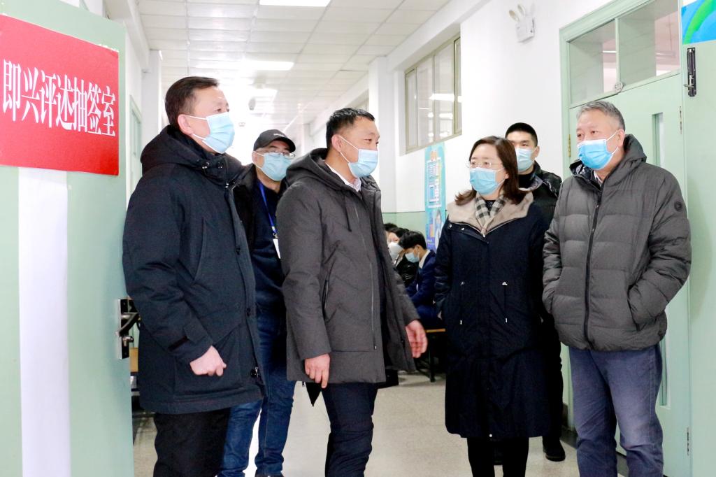 强添刚副院长、陈喜军书记一行从入门测温开始“走流程”,实地查看了备考室、考场、备用考场、隔离室、考务室、监控室及考场外围环境,认真听取了情况汇报,对HG8088皇冠考务工作给予充分肯定,尤其对测温、消杀、安检、保暖、通行等细致周到的考生综合服务保障举措给予高度赞扬。