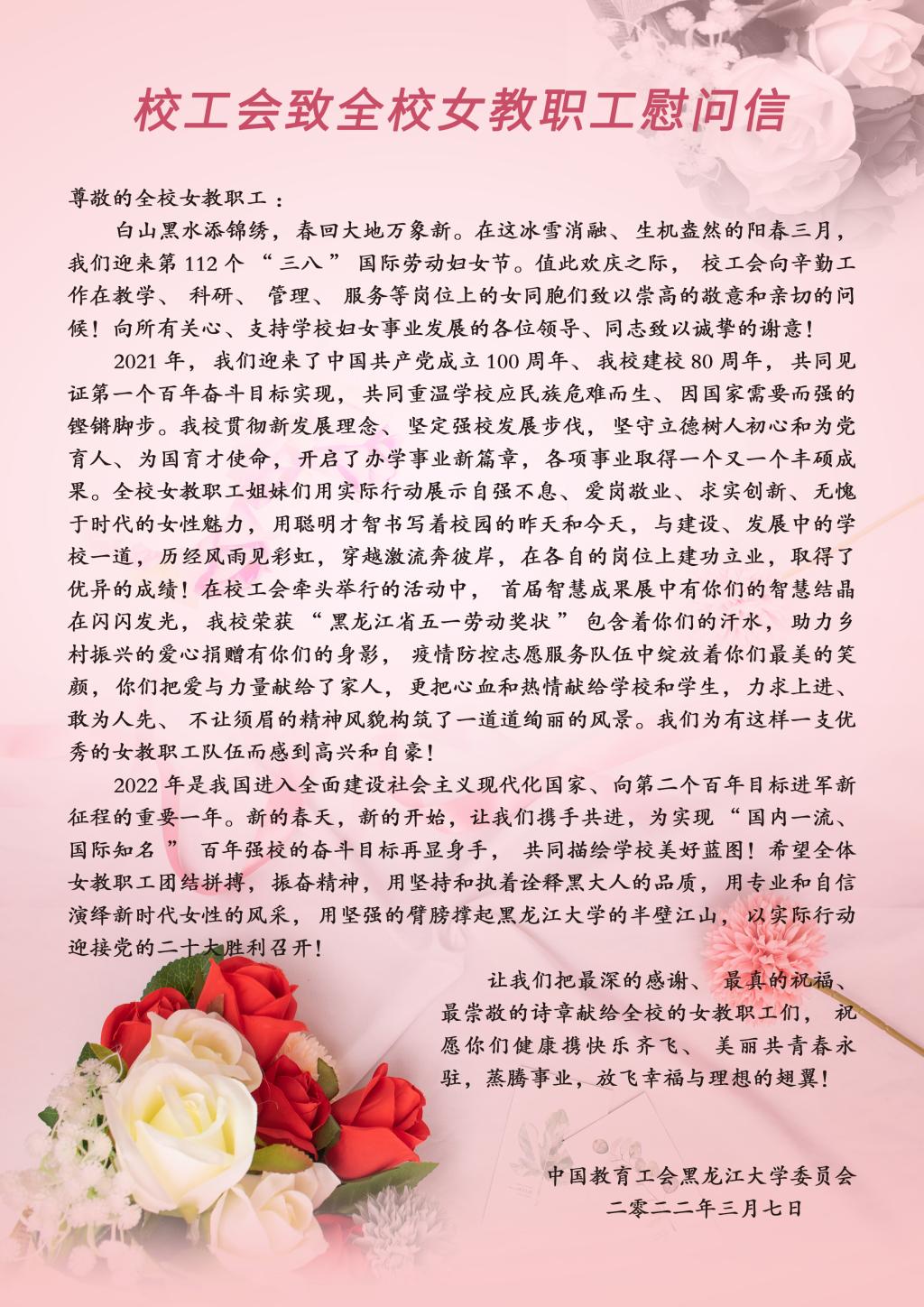 校工会致全校女教职工慰问信
