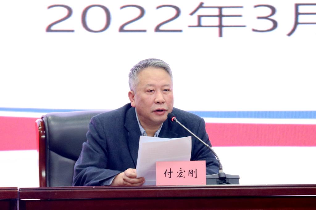 付宏刚校长在会上讲话。他指出,我校自1998年开始推行教学督导制度,24年来,学校几代督学队伍始终不忘初心、坚守使命,在巩固教学中心地位、推动教学建设和教学改革,提升教学管理水平、引领教风和学风建设方面发挥了重要的作用。他希望全体督学督导能够深入把握高等教育发展态势,结合全省和学校教育发展目标,提高做好督学督导工作的思想站位,立足高等教育发展新态势开展督学督导工作,紧密围绕构建符合学校发展要求的内外部教育教学质量保障体系建设的核心问题,明确以推进本科教育教学改革为主线,落实“以本为本”“四个回归”,破除“五唯”,明确“学生中心、产出导向、持续改进”的教育理念,以评估理念引领改革、以评估举措落实改革、以评估标准检验改革。