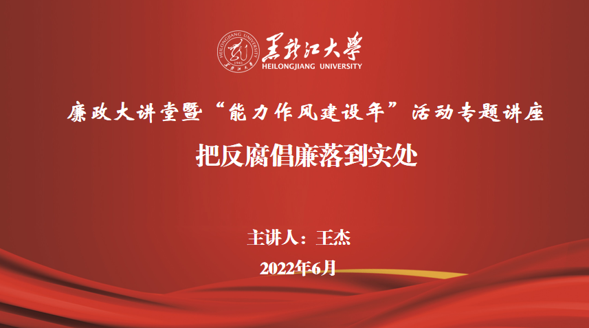 为贯彻学习习近平总书记在中央政治局第四十次集体学习时的重要讲话精神,进一步明确部署学校全面从严治党工作,落实学校“能力作风建设年”的相关活动要求,凝聚管党治党的思想共识和行动力量,6月22日下午,我校以线上会议的方式开展廉政大讲堂暨“能力作风建设年”活动专题讲座。中共中央党校(国家行政学院)教授、博士生导师,中国实学研究会会长王杰,以《把反腐倡廉落到实处》为主题,为我校领导干部作专题宣讲。我校全体校领导、全校中层干部参加会议。会议由我校党委副书记丁宏主持。