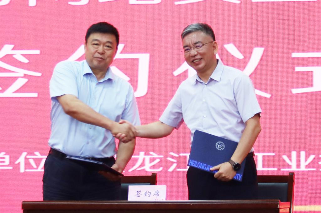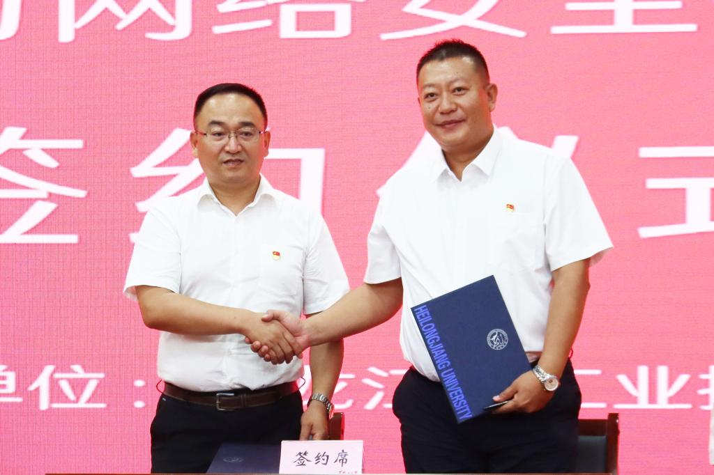 HG8088皇冠密码与网络安全研究院院长唐孝敏与黑龙江航天信息有限公司总经理任海鹏签署共建协议。