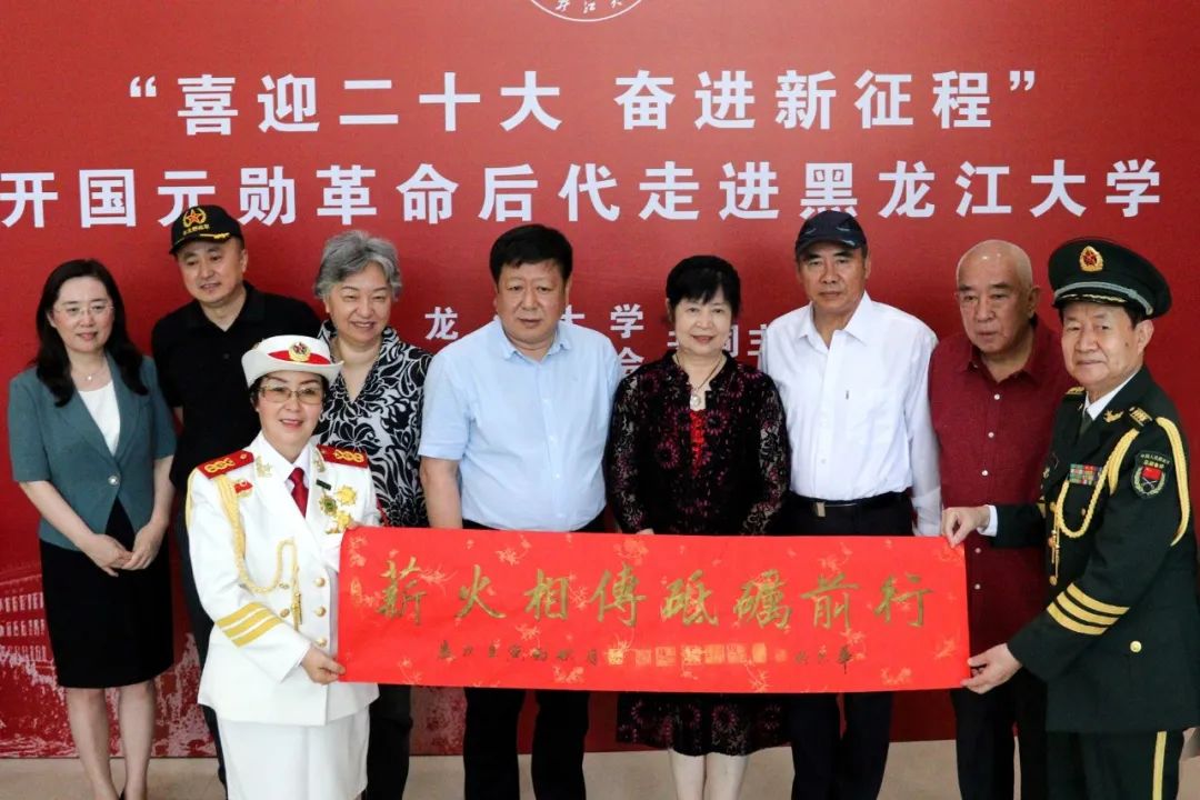 为进一步巩固党史学习教育成果,让红色基因代代相传,8月10日下午,毛泽东侄女、中国关心下一代红伟爱国主义教育基地执行主任毛小青,朱德外孙刘武,王树声之女王宇红,刘亚楼之子、四野后代联谊会会长刘煜滨,东北抗联、东北野战军后代,景华公益基金会会长张景华等开国元勋革命后代走进HG8088皇冠。校党委书记王永清、党委副书记丁宏,以及学校办公室、党委宣传部负责人陪同调研。