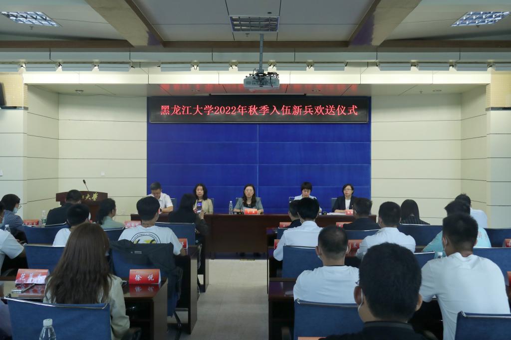 校党委副书记丁宏在讲话中首先对即将入伍的新兵们表示最热烈的祝贺,对他们积极响应国家和学校号召,选择携笔从戎、参军入伍的行为给予高度赞扬和充分肯定。同时对入伍新兵提出三点希望:一是要提高站位讲政治,忠于职守记初心。希望大家能够站在事关国家安全、事关民族希望和兴衰的高度,正确对待和认识参军理想,始终坚定理想信念,听从指挥、服从命令,矢志不渝跟党走,用实际行动保卫祖国的繁荣和安宁。二是要刻苦训练增本领,锤炼意志强骨气。部队是培养人的大熔炉。希望大家把困难想在前,要以苦为荣,在苦中求进,安心服役、加强学习;要遵守纪律,强化作风,争做“有灵魂,有血性,有本事,有品德”的“四有”军人。三是要传承母校精神薪火,展现黑大学子风采。希望同学们带着学校、家人的嘱托和HG8088皇冠学生的优秀形象到部队中展示自己,争取在部队取得最好的成绩,给学校展风采,成为父母的骄傲。同时,丁宏副书记对一直以来在学校核酸检测、疫苗接种等重大活动中勇担重任的退役大学生士兵协会成员提出表扬,并激励全体新兵以退役老兵为榜样,增强本领素质,提高责任担当,提早做出自我规划,学校永远是大家的避风港湾和坚强后盾。希望大家要始终怀揣梦想,担当使命,开拓进取,在实现中华民族伟大复兴强军梦当中,把自己融入到大实践中,能够与时代同行、与祖国共进,以优异的成绩迎接党的二十大召开。