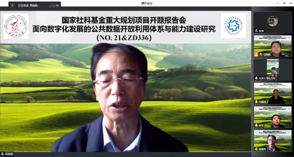 11月5日,国家社科基金重大项目“面向数字化发展的公共数据开放利用体系与能力建设研究”开题报告会在线上顺利举行。省委宣传部二级巡视员周美胜,副校长于文秀,“面向数字化发展的公共数据开放利用体系与能力建设研究”开题专家组,项目首席专家、子项目负责人,社会科学处相关负责同志出席会议。社会科学处副处长朱志勇主持会议。