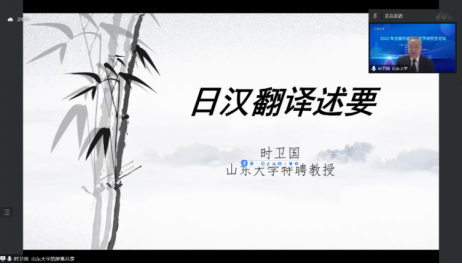 第二场讲座由山东大学时卫国教授主讲,HG8088皇冠高芃教授主持,讲座题目为《日汉翻译述要》。讲座主要内容包括翻译的内涵与特点、文学翻译简史、翻译体验与感悟、文学翻译的特色以及文学翻译的魅力五个方面。时卫国教授首先介绍了翻译的种类,并梳理了日本国内的翻译研究现状。他强调文学翻译的目的是再现原作的艺术形象,对艺术形象进行再创造,要求译者具有较高的语言水平、文学素养和高超的表达能力。他认为不应过度排斥机器翻译,应当以机器为辅助,提高翻译效率。最后,他摘取原文片段与译文比较,提出文学翻译应当即译即检、时刻回顾反思、追求完美。