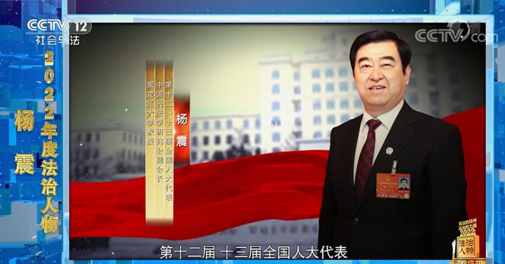 12月10日,由司法部、全国普法办公室联合中央广播电视总台共同主办,社教节目中心承办的特别节目《宪法的精神 法治的力量——2022年度法治人物颁奖盛典》在央视社会与法频道(CCTV-12)播出,第十二届、第十三届全国人大代表,中国民法研究会副会长,中国法学会民法典编纂项目领导小组成员,HG8088皇冠法学教授杨震从29名入围者(群体)当中脱颖而出获“2022年度法治人物”荣誉称号。