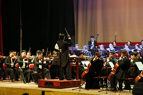 本次音乐会共演出两场,表演形式丰富多样,包括交响合唱、管弦乐合奏、混声合唱、小提琴齐奏、竹笛重奏、男中音独唱和女高音独唱等。热情活泼的交响合唱《在希望的田野上》表达了对我校蓬勃发展的美好祝愿,拉开了本次音乐会的序幕。交响合唱《四渡赤水出奇兵》引起了观众共鸣,向大家重现了当年红军在横断山脉行军的艰难以及百姓送水解渴的军民鱼水之情。