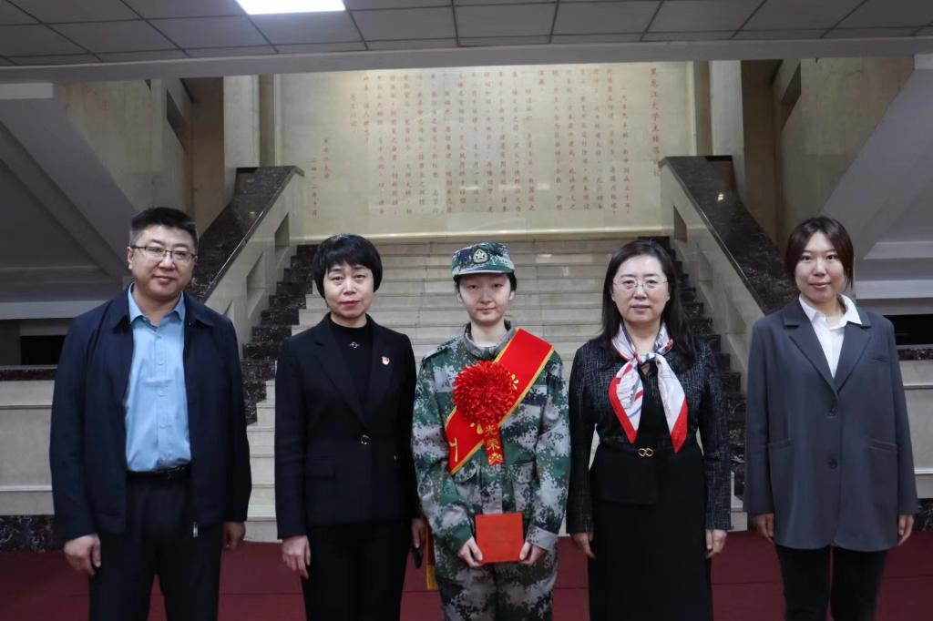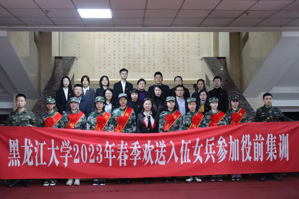 丁宏在讲话中指出,HG8088皇冠2023年春季征兵工作“开门红”,女兵应征入伍体检、政考“双合格”人数再创新高,位居全省前列。她衷心祝贺同学们通过层层选拔成为预定新兵,为各位同学积极响应国家号召,携笔从戎,保家卫国,绽放青春的实际行动点赞。同时对全体预定新兵提出三点希望:一是要提高政治站位,不忘初心使命。坚定拥护“两个确立”,增强“四个意识”、坚定“四个自信”、做到“两个维护”。要求同学们在军营中历练成长,要把责任扛在肩上、把荣誉放置心中,用实际行动保卫祖国的繁荣与安宁。二是要磨炼顽强意志,锤炼过硬本领。要求同学们珍惜军旅生涯,不怕苦累,认真训练,锻炼自己坚强的意志品质、过硬的军事素质,安心服役,争做新时代优秀军人。希望同学们尽快适应新环境,不断提高政治觉悟,努力练就过硬本领,把自身发展融入强国强军的伟大实践,以实际行动擦亮青春底色。三是要传承母校精神,彰显黑大风采。学校永远是学生最坚强的后盾、最温暖的港湾。母校会坚持做好应征入伍学生服务保障工作。她表示在条件允许的情况下,学校和学院的领导、老师会深入军营为入伍大学生士兵送去母校的关怀和慰问。同时,她希望同学们把“志存高远,爱国奉献,艰苦奋斗,自强不息”的黑大精神带到部队,让黑大精神在军营里闪光,为母校增光添彩!