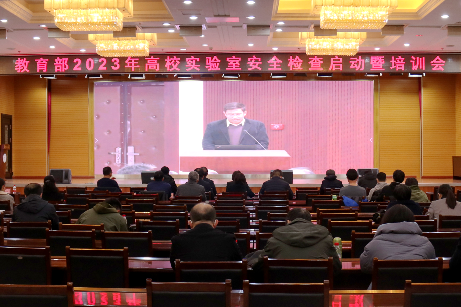为落实好本年度实验室安全检查工作,切实提升学校实验室安全管理水平,根据《教育部科学技术与信息化司、高等教育司关于组织召开2023年高校实验室安全检查启动暨培训会的通知》文件精神和学校相关要求,4月7日上午,我校在主楼一楼报告厅设立分会场,组织线上参加“2023年高校实验室安全检查启动暨培训会”,副校长井立强、实验室建设与设备管理处全体人员、安全保障部领导及相关管理人员、各教学科研单位分管实验室安全工作的领导、实验室主任、实验室管理员、实验工程技术人员及实验教师等共计100余人参加此次培训会议。会议由教育部高等教育司副司长宋毅主持。