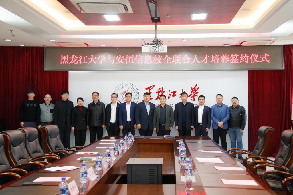 4月24日下午,我校与杭州安恒信息技术股份有限公司在主楼8楼会议室举行校企联合人才培养协议签约仪式。杭州安恒信息技术股份有限公司数字人才创研院副院长吴鸣旦,黑龙江办事处主任朱成林、副主任王海波、技术经理刘强,我校副校长严明,教务处、研究生院、数据科学与技术学院主要负责人等出席签约仪式。数据科学与技术学院院长王磊主持签约仪式。