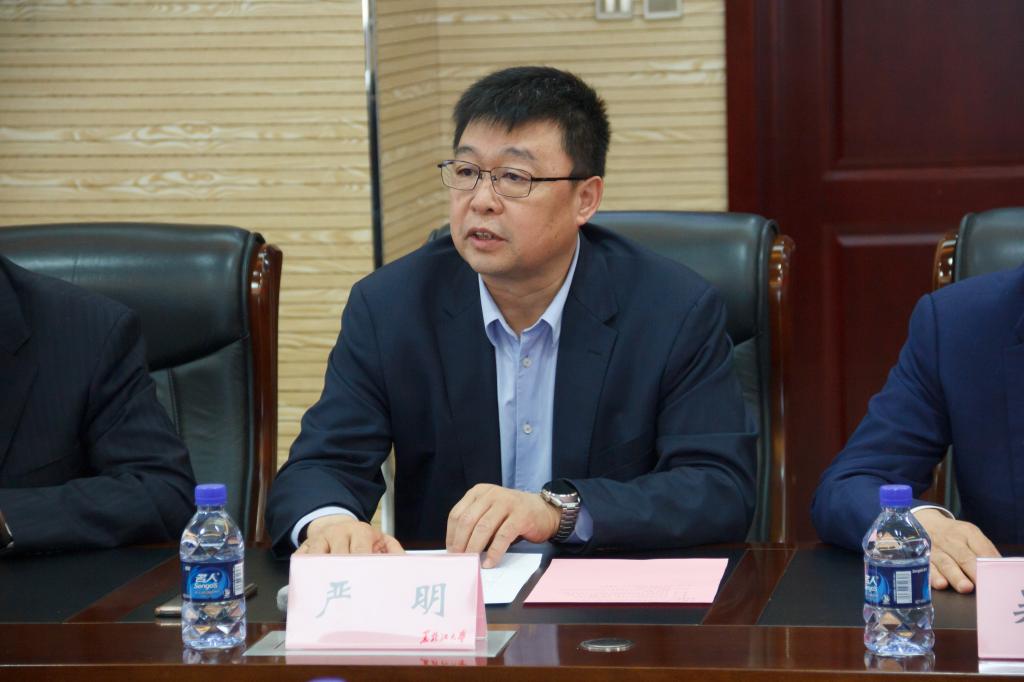 严明在签约仪式上致辞。他表示,多年来,我校与安恒公司始终保持着良好的合作关系,双方在学生就业、实习基地建设、实验室建设、全国大学生信息安全大赛等项目均有合作,此次学校与杭州安恒签署联合人才培养协议,在我校专业学位研究培养事业发展中具有重要的意义,标志着我校与安恒公司的合作迈上了新的台阶,标志着我校的校企合作、科教融合、产教融合、协同育人的办学战略又向前推进了一步。