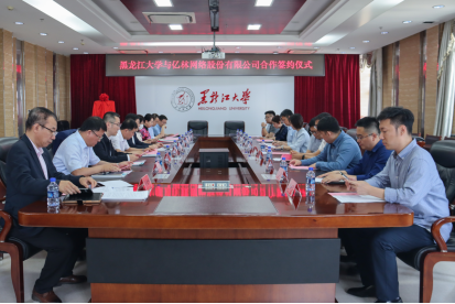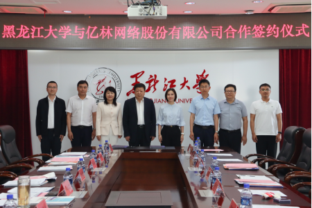 6月12日下午,“黑大亿林网络空间安全产业技术研究中心”签约仪式在主楼802会议室举行。黑龙江省工业技术研究院副院长盛黎明、高级技术经理程璐,黑龙江亿林网络股份有限公司董事长孙甲子、总经理李璐昆、副总经理邵雅斌,我校党委书记王永清、副校长于文秀、教务处处长吴华洋、科技处副处长孙来军,数据科学与技术学院、电子工程学院、计算机科学技术学院、软件学院、数学科学学院相关负责同志出席签约仪式。数据科学与技术学院院长王磊主持签约仪式。