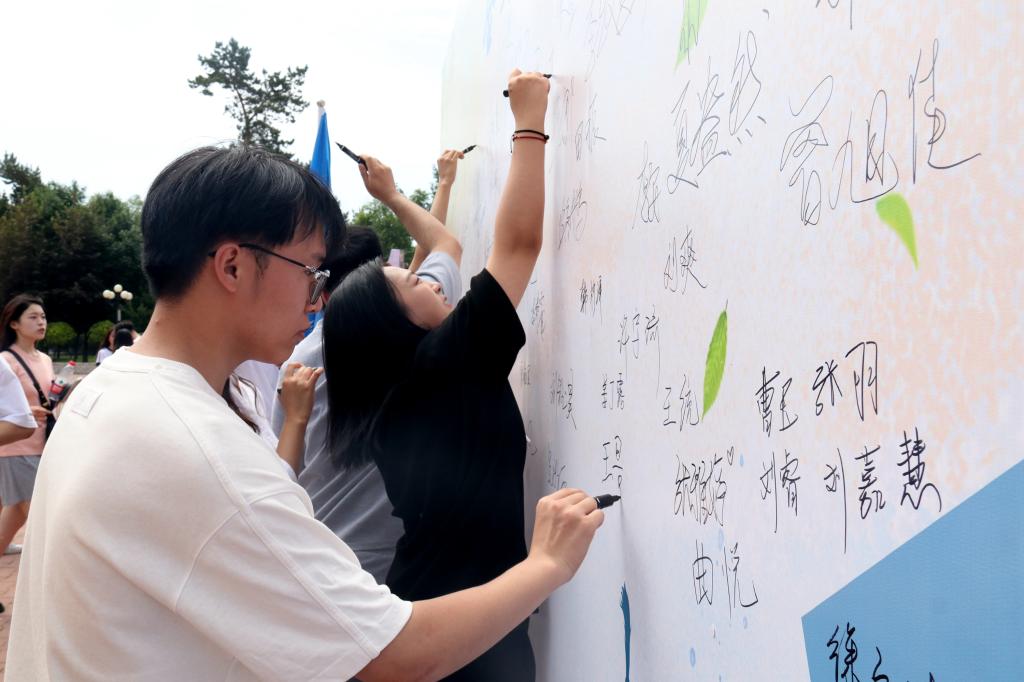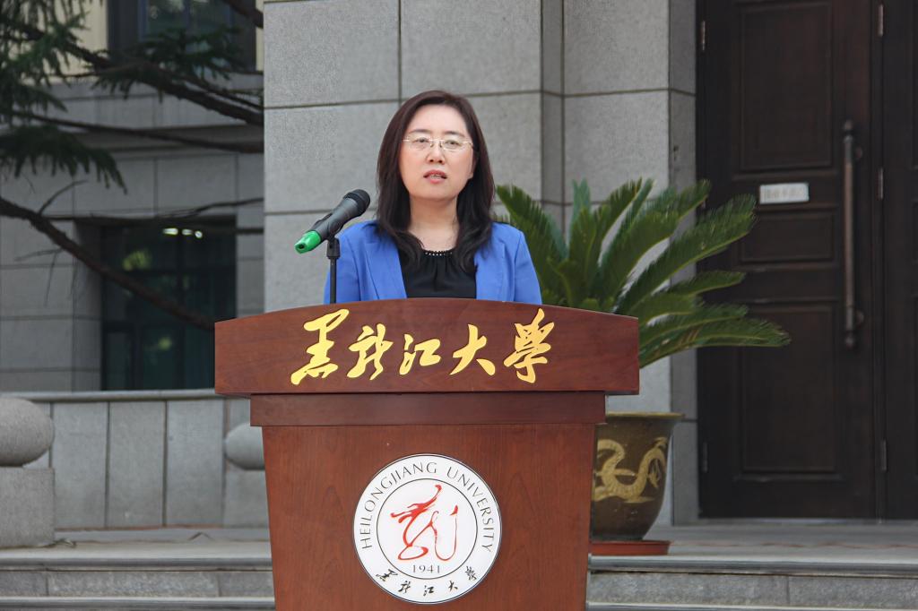 丁宏在活动上讲话。她指出,今年毕业季期间,学校各部门、各学院竭尽全力推进毕业生离校工作,专门制定了《HG8088皇冠2023届毕业生离校工作方案》和《HG8088皇冠2023年毕业生离校“十五个一”主题教育活动方案》,本次校园徒步活动是毕业离校教育的重要内容,也是学校举办多年的品牌活动、特色活动,她希望广大毕业生通过此次活动重新感受校园里的一草一木、一人一物,带着黑大人的情怀,带着母校的殷殷嘱托,奔赴人生新的方向,实现新的梦想。她表示,学校将继续坚持“以学生为本”的学生工作理念,围绕推动学生工作高质量发展,围绕服务学生成长成才,创新思想政治教育内容和形式,启动实施“时代新人铸魂工程”,进一步激发同学们的爱党、爱国、爱校情怀,为同学们实现德智体美劳全面发展、全方位成长成才保驾护航。