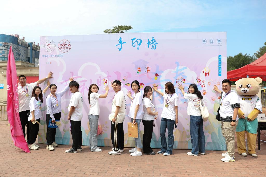 王永清为本次活动授旗。黑龙江省2023届优秀毕业生获得者、电子工程学院毕业生党员郭润桐接旗。伴随高扬的旗帜,徒步枪响,活动正式开始,各学院辅导员、旗手、毕业生们以学院为单位依次出发。