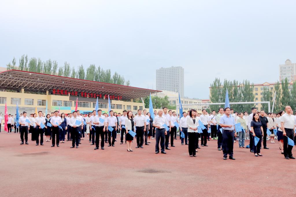在雄壮的国歌和激扬的校歌声中,国旗、校旗冉冉升起。