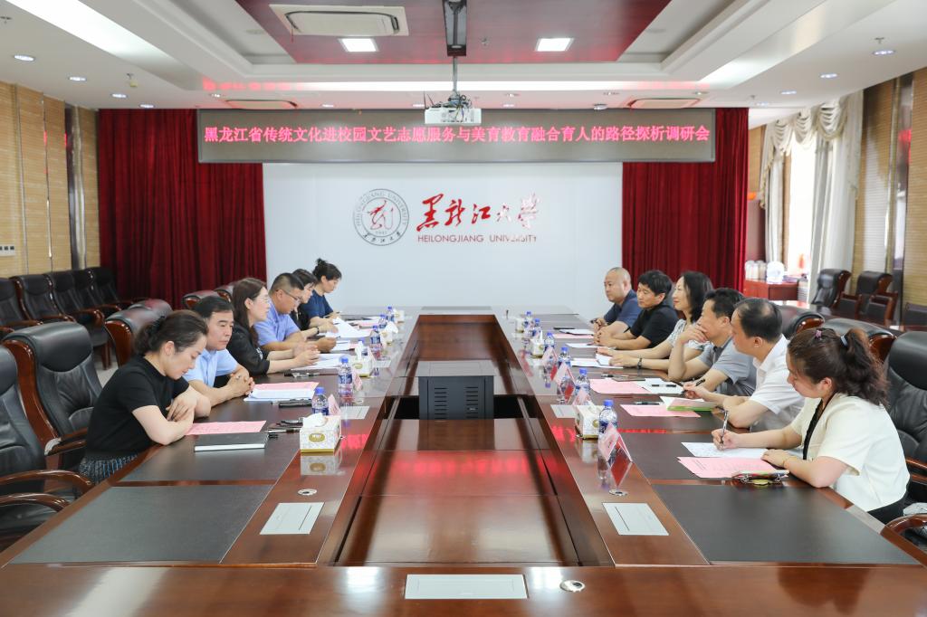 7月4日下午,省文联党组成员、副主席黄锦秋一行来校调研,并在主楼A802会议室召开黑龙江省传统文化进校园文艺志愿服务与美育教育融合育人路径探析调研会。校党委副书记丁宏,党委宣传部、校团委、教务处、艺术学院相关负责人参加会议。