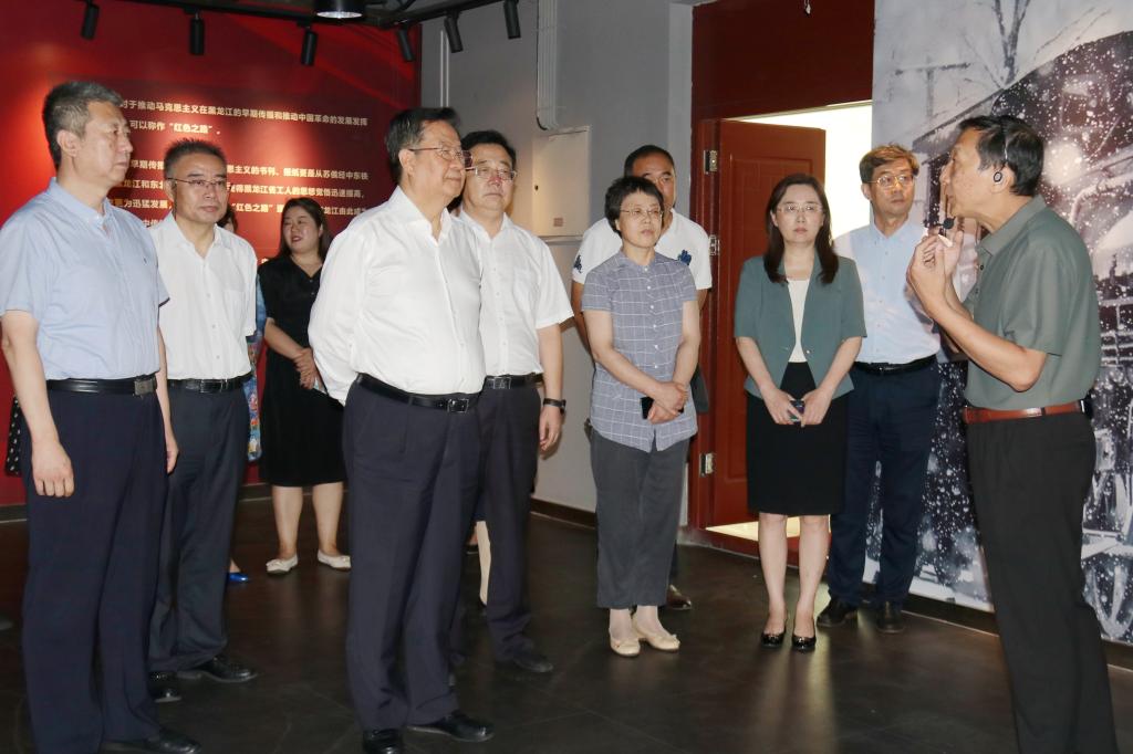 调研组一行首先参观我校“红色之路——马克思主义在黑龙江早期传播展”。通过观看图文、史料、手札、原版照片,详细了解我省早期留学人员在马克思主义在黑龙江早期传播的艰辛历程,展示了我省早期留学人员在马克思主义早期传播过程中的重要地位,寻真理之光,品主义之甘,谱写马克思主义中国化时代化新篇章。