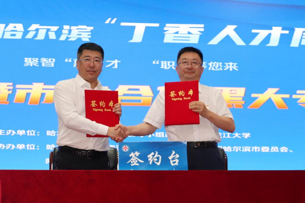 活动现场,市人社局、团市委,阿城区、通河县、方正县等单位就人才就业信息共享战略合作、推进金源文化发展、现代农业产学研建设、电子信息商务合作等方面与我校现场签署了项目合作协议;同时,共青团哈尔滨市委动员企业捐赠10万元,在我校设立奖学金。