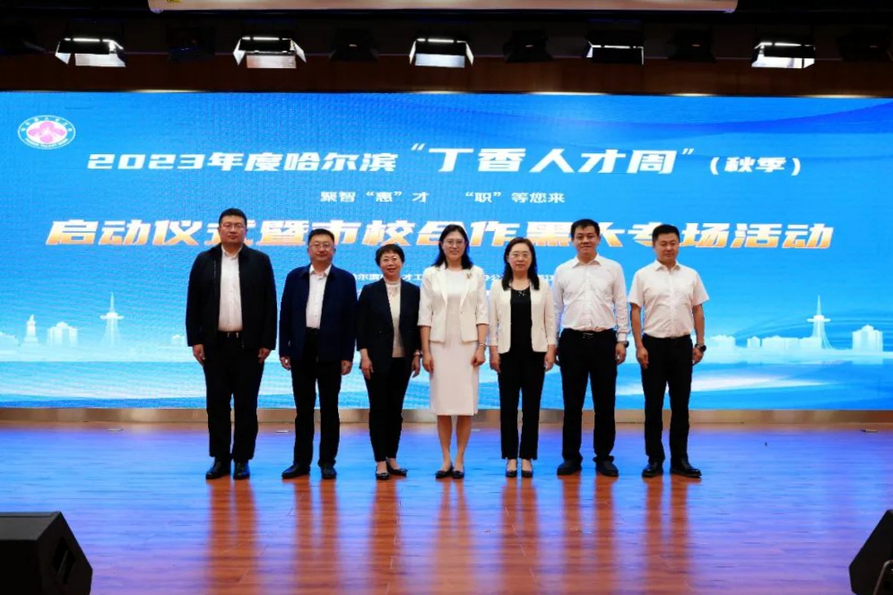 为深入贯彻落实《新时代龙江人才振兴60条》《哈尔滨人才新政30条》政策措施。9月7日上午,由哈尔滨市人才工作领导小组办公室主办的哈尔滨“丁香人才周”(秋季)启动仪式暨市校合作黑大专场活动在我校主楼一楼报告厅举行。哈尔滨市委常委、副市长郭顺民,校长王敬波,党委副书记丁宏、李君明,副校长李卓出席启动仪式。校党委副书记丁宏主持启动仪式。