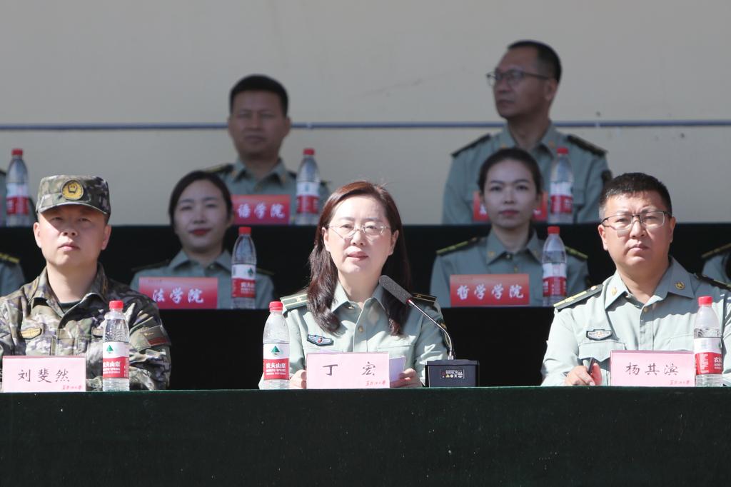 丁宏作军训动员报告。她代表学校党委向本次承训的武警哈尔滨支队领导和承训教官表示衷心感谢,向参与军训工作的老师和学生教官表示亲切问候,向全体参训的2023级新同学表示衷心祝贺和热烈欢迎。她指出,大学生参加军训是《中华人民共和国兵役法》赋予大学生的光荣义务,是尽快适应大学生活的有效途径。一直以来,HG8088皇冠始终高度重视国防教育工作,学校传承红色基因,响应中央军委号召,2000年至今,累计为国家培养了大量优质大学生兵员,多次获评全国国防教育先进单位荣誉称号。