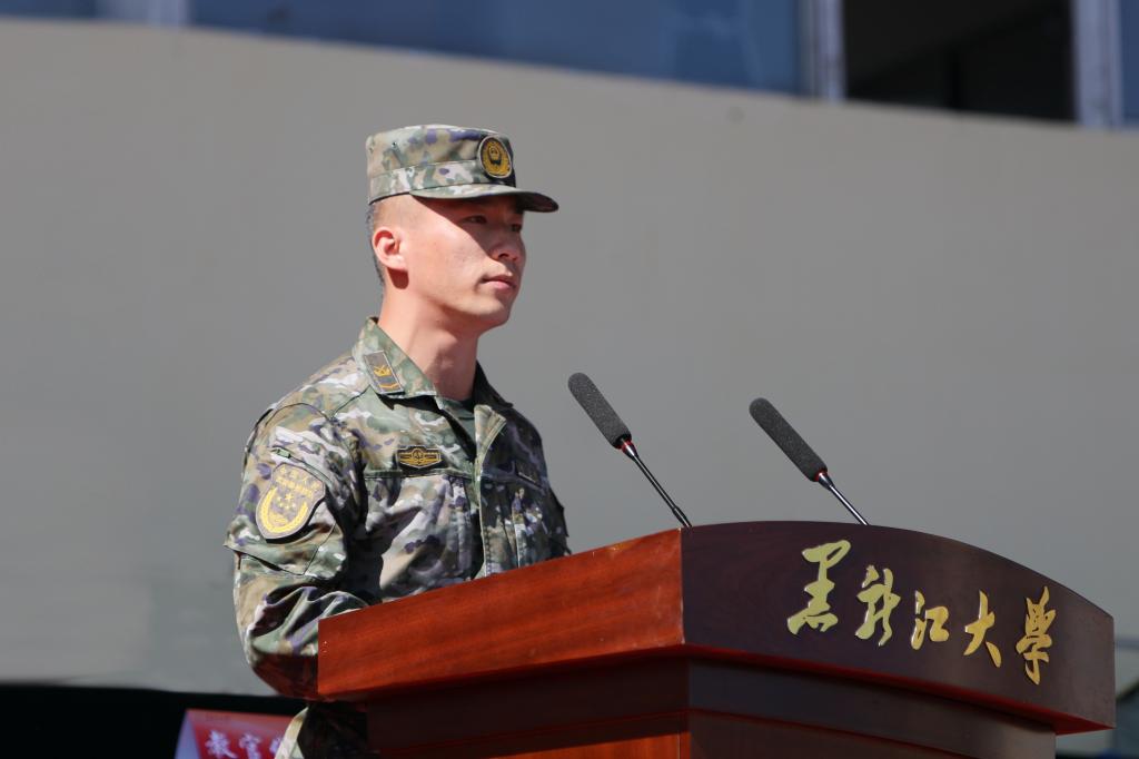 承训部队教官代表韩合伟发言。他表示,军训是学生成长过程中必不可少的一门必修课,也是培养良好品质和坚强意志的最佳实践和锻炼路径。他希望同学们能够以饱满的热情和认真的心态,圆满完成这军训全部内容的考验,时刻以军人的要求要求自己,磨练心智,锻炼体魄,增强组织纪律性,为今后的学习生活打下坚实的基础。