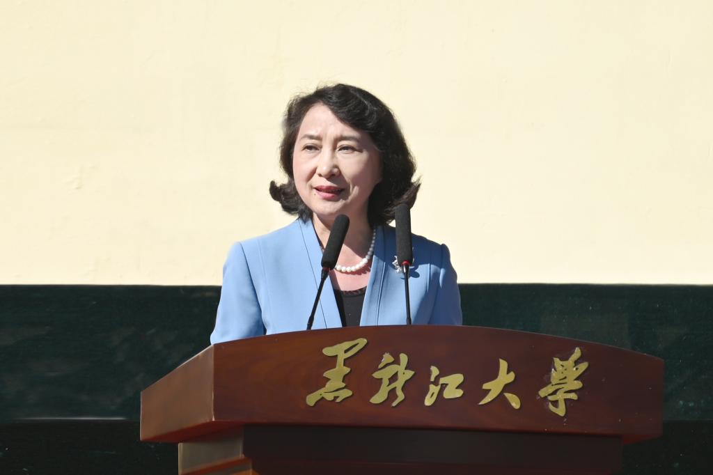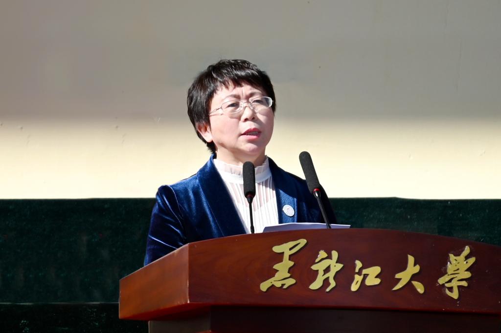 法学院博士生导师、国家教学名师王歌雅教授代表全体教师讲话。她表示,在同学们打卡了黑大精神性的地标与沉浸式的校园体验过后,希望同学们能够尽快融入校园,了解感受独属于黑大自由独立的精神品格和宽阔厚重的视野胸襟,为学校的发展建设添砖加瓦。她期望新同学将自己的理想抱负与家国情怀紧密相连,掌握过硬的技能本领,培养自身的人文素养,在成功的道路上砥砺前进。