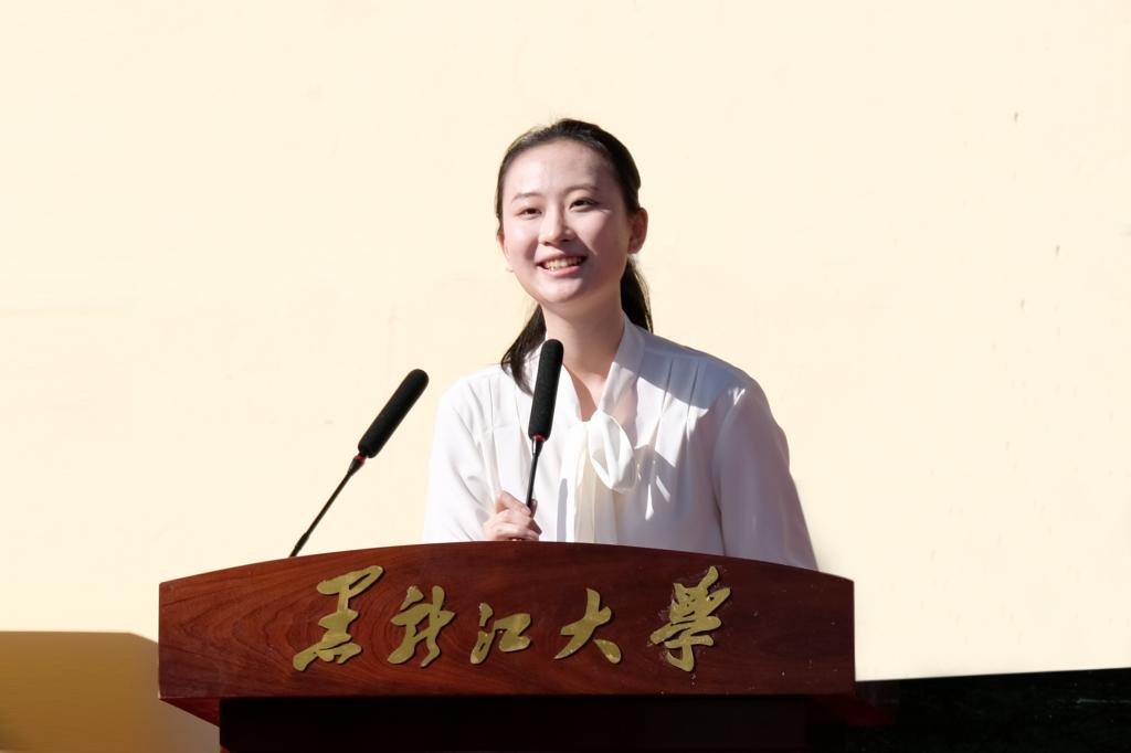 哲学学院2023级哲学专业基础学科拔尖培养计划班李佳真代表新生发言。她对黑大传承的延安精神表示崇高的敬意,并号召全体新生立志在传承红色血脉中激发拼搏梦想,在厚植家国情怀中脚踏实地,把青春梦想融入到个人的砥砺奋进中,融入到黑大的高水平建设中,融入到党和国家的伟大事业中。