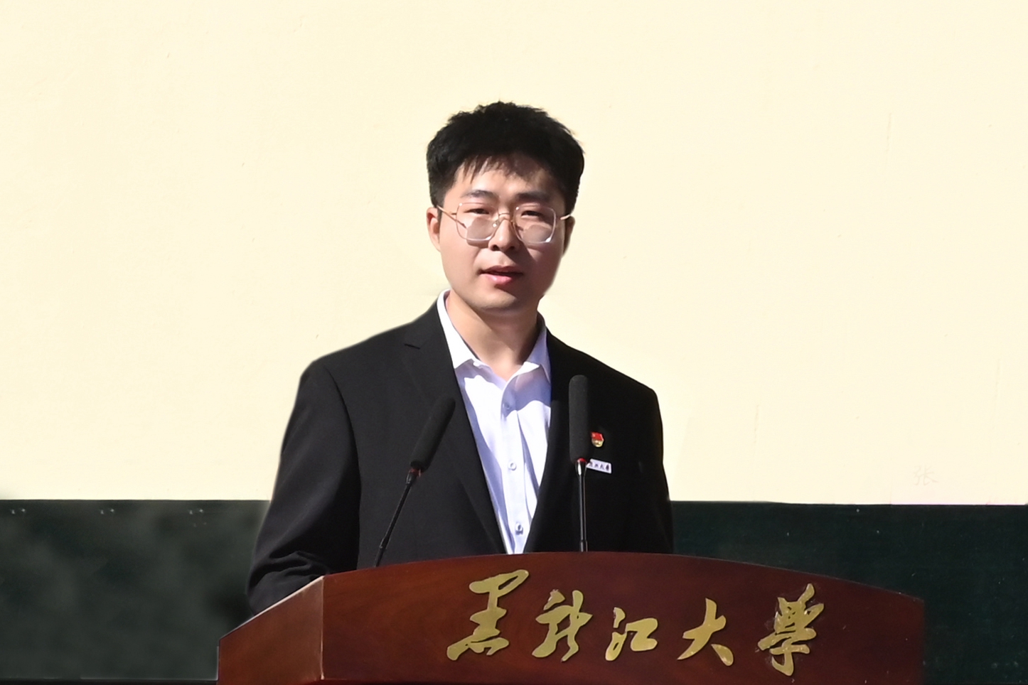 研究生院2022级计算机科学与技术专业崔延昌代表在校生发言。他结合自己在黑大七年的求学经历,勉励新同学以“博学慎思,参天尽物”的校训,“志远行实,学而不厌”的学风向下扎根、向上生长,做追梦筑梦、勇于担当的黑大青年,谱写砥砺奋进、绚丽多彩的青春华章。