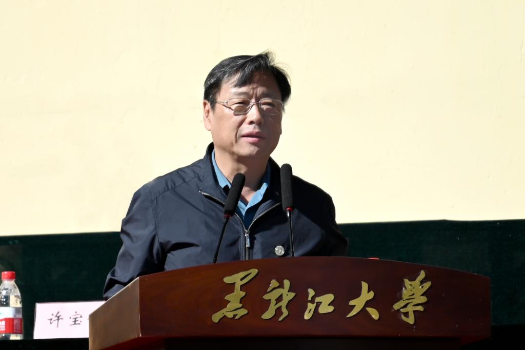 学校81级校友,中央党校(国家行政学院)研究员、博士生导师、高级编辑、学习时报社社长许宝健作为校友代表讲话。他深情回顾了在HG8088皇冠求学的往事,结合自己的专业特长向同学们提出全方位发展的“五个一”,真正做一个养成一个好习惯、炼就一副好身板、树立一个小目标、磨励一种新思维、锻造一副好德行的新时代大学生,让自己的青春在黑大绽放出最明媚的色彩。