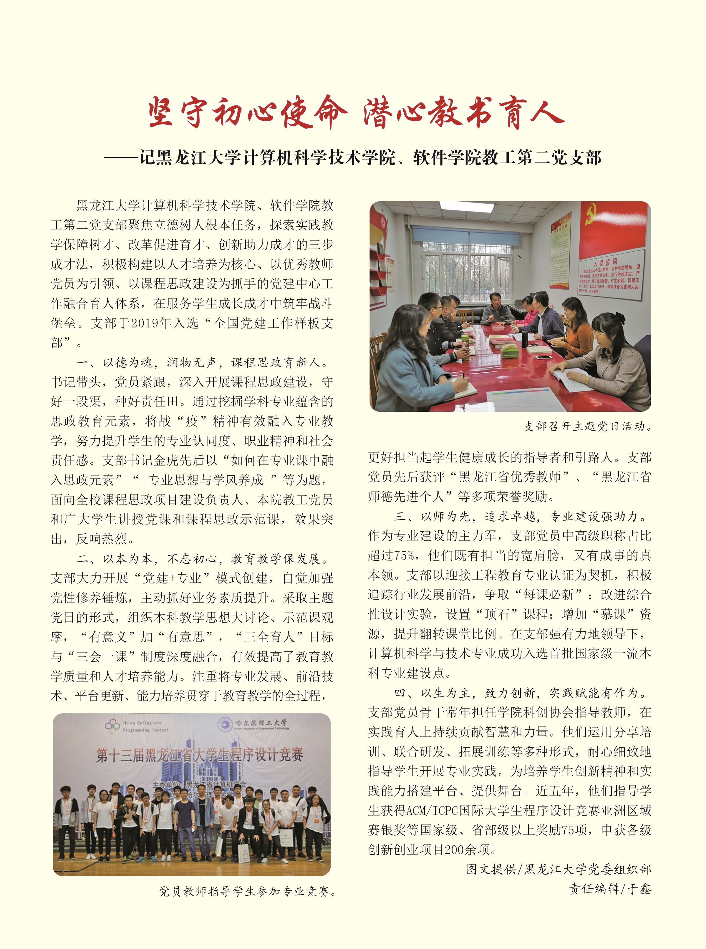日前,《奋斗》刊发我校计算机科学技术学院、软件学院教工第二党支部事迹《坚守初心使命 潜心教书育人》。