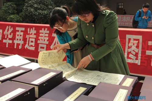 见到这些化身千百的古籍文献,许多学生也感慨颇深。“这些古书以前只是听说过,从未见过‘真身’,今天见到竖排排列、原汁原味的纸质版善本,既亲切又新鲜。”大四学生朱文龙说道,“现在我们对于传统文化的阅读越来越少,把珍贵古籍影印出来也是对传统文化的推广。”“书是人类进步的阶梯,大学生更需要通过阅读来沉淀自己,从今天看到的古籍中我能感到浓浓的墨香与知识的熏陶。”法学院2011级学生王琪说。