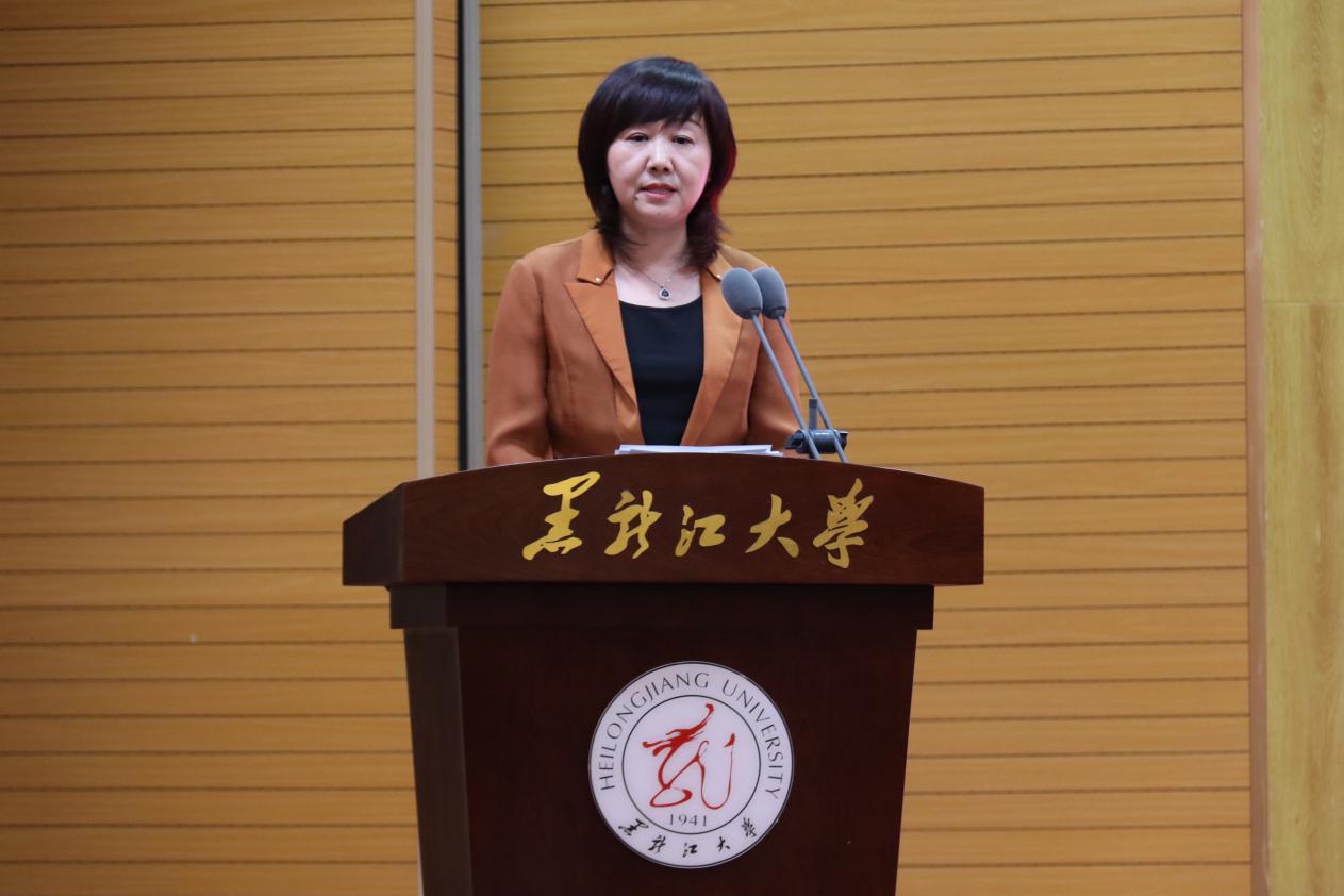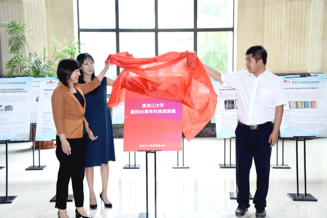 鹤岗市科技局局长尹波代表地方科技局致辞,省农业农村厅科教处处长樊丽娜为“HG8088皇冠建校80周年优秀科技成果选粹”揭幕。