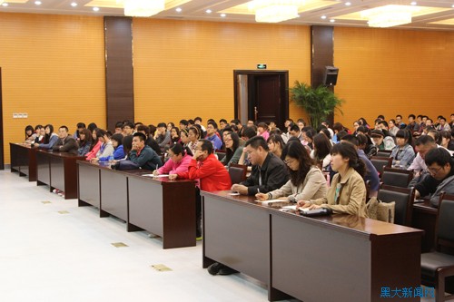 邓军院长对李凤林大使精彩的学术报告表示衷心感谢,并表示将继续秉承学校多年来的对俄办学传统,以国家对俄人才战略趋势为指引,培养优秀的对俄人才,为实现黑大梦、龙江梦、中国梦尽一份力量。(摄影:陈若石)