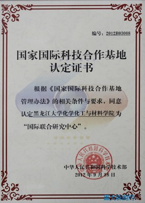 近日,国家科技部在北京举行了国家国际科技合作基地证书授予仪式,根据国家科技部(国科发外[2012]929号)文件,为全国20家被认定为国家国际科技合作基地(国际联合研究中心类)的单位颁发了认定证书,我校“催化技术国际联合研究中心”位列其中。