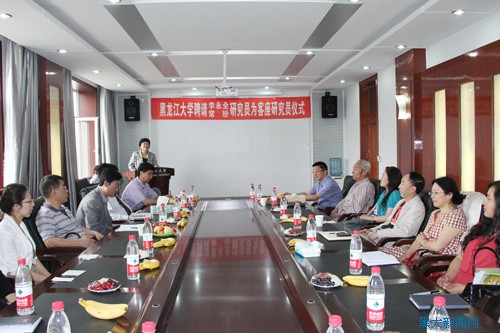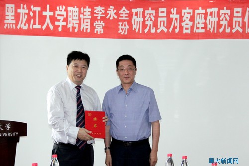 张政文校长在会上发表重要讲话。他对两位研究员所具备的学术品格和学术风范表示由衷赞赏,对他们在对俄研究方面所取得的突出成绩表示崇高敬意。张校长说,我校作为中国最早培养对俄高级专门人才的大学,始终秉承对俄办学传统,发挥对俄办学优势,在对俄人才培养、科学研究、社会服务和文化交流传播等方面均取得了突出成绩。目前,国家正在实施“2011计划”,我校的对俄发展也迎来了重大机遇期,希望李永全、常玢两位研究员的到来能够为我校对俄研究注入新的动力,推进我校在促进龙江经济社会发展、推动东北老工业基地振兴和深化中俄战略协作伙伴关系等方面发挥积极作用。