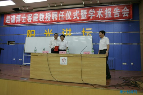 6月29日下午,财政部财政科学研究所特聘教授、黑龙江省政府采购办主任赵谦博士受我校经济与工商管理学院之邀做客阳光讲坛,为学校师生奉上了题为《当前的宏观经济形势及对策》的精彩的学术报告。副校长闫鹏飞出席了报告会。讲座由经济与工商管理学院院长焦方义主持。