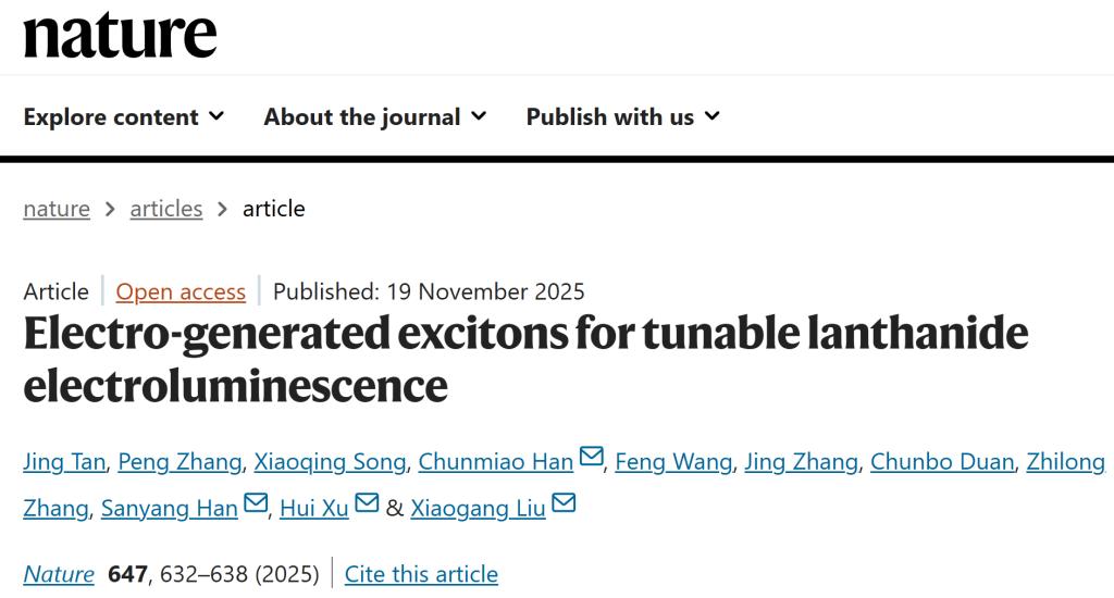 论文标题:Electro-generated excitons for tunable lanthanide electroluminescence